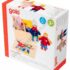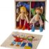 Käelist tegevust pakkuv riietamismäng “Birte ja Ben” sisaldab 2 painduvat nukku ning 8 komplekti riideid puidust karbis.