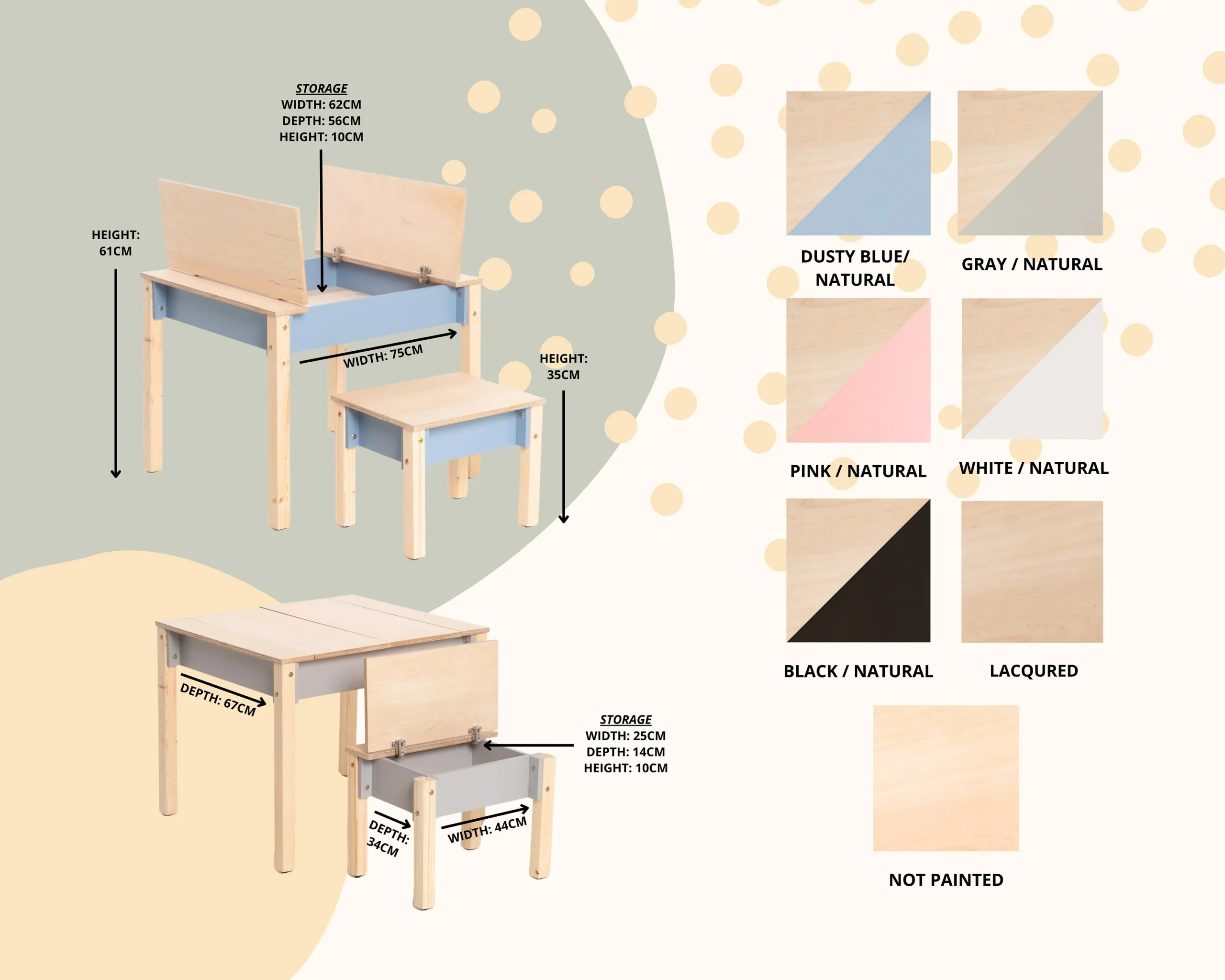 Lastelaud ja tool “Panipaigaga” (värvivalik)