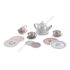 Komplektis on 4 teetassi, 4 alustaldrikut, 4 taldrikut ja teekann, mis on pastellsetes toonides ja kaunistatud erinevate piltidega.