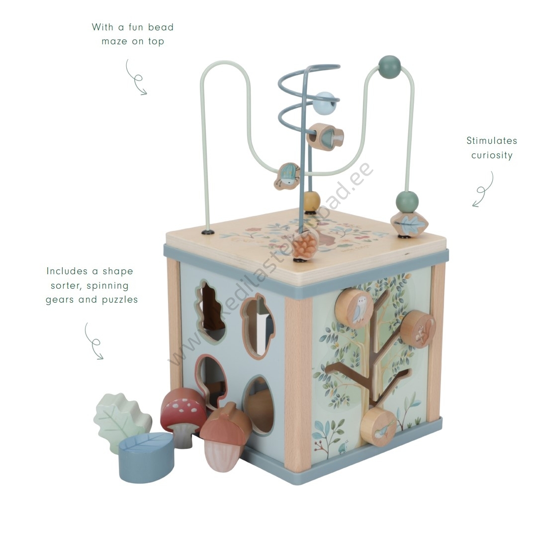 See Little Dutch´i puidust motoorikakeskus pakub lastele palju väljakutseid. Igal küljel on ´Forest Friends´ kollektsiooni illustratsioonid ja arendav tegevus, sealhulgas kujude sorteerija, mõistatused ja lõbus spiraal. Iga selle tegevusega arendavad lapsed oma peenmotoorikat ja on julgustatud oma loovust kasutama. See mänguasi köidab laste uudishimu ja pakub palju nalja. Väikelapse peenmotoorika arendamine on oluline lapse taju, tähelepanu, mälu, mõtlemise ja kõne ning hilisema lugemisoskuse arendamiseks.