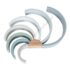 Vikerkaar koosneb kaheksast kaarest, mis omavahel kokku sobituvad. Teie laps saab neid poolringikujulisi kujundeid kasutada mängimiseks ja õppimiseks ning teha igasuguseid kujundeid kasutades oma kujutlusvõimet. Neid kaari saab kasutada ka näiteks rongitunnelina, väikeste majadena nukukeste jaoks või mägedena autodele.